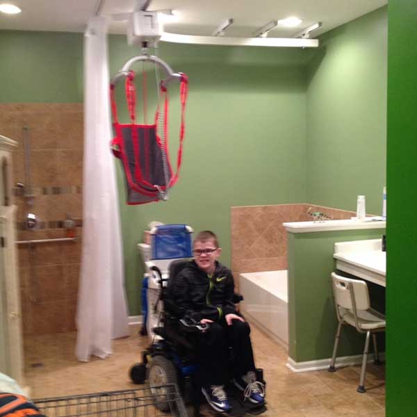 Liam’s family needed a barrier-free lift to help care for his transfers and bathing. KatibugKids helped purchase this system for Liam who has Duchenne Muscular Dystrophy.